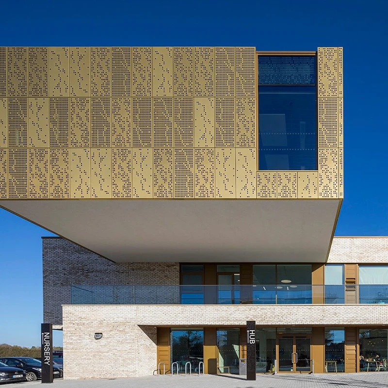 吸音降噪:孔的存在使得声波可以穿过铝板,从而减弱声音强度,降低噪音。在一些对隔音要求较高的场所,如医院、地铁、会议厅、体育馆、电影院等,冲孔铝单板具有很好的应用效果。如果需要更好的吸音降噪功能,还可以在铝板背面加装吸音布或隔音棉。